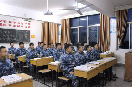 为了形成浓郁的军营文化氛围,士官生分区集中住宿,统一管理,宿舍统一张贴社会主义核心价值观、军人核心价值观和一室一格言等内容,划分单独楼层用于士官班教学,在教室及走廊通过张贴舰艇海报和军旅格言、船模展示、板报墙报等,学校加大资金投入,购置海军士官拓展训练设备,激励学生团结合作、顽强拼搏、崇尚集体荣誉,营造以“士官拓展训练”为主题训练场地,从文化育人上塑兵型。