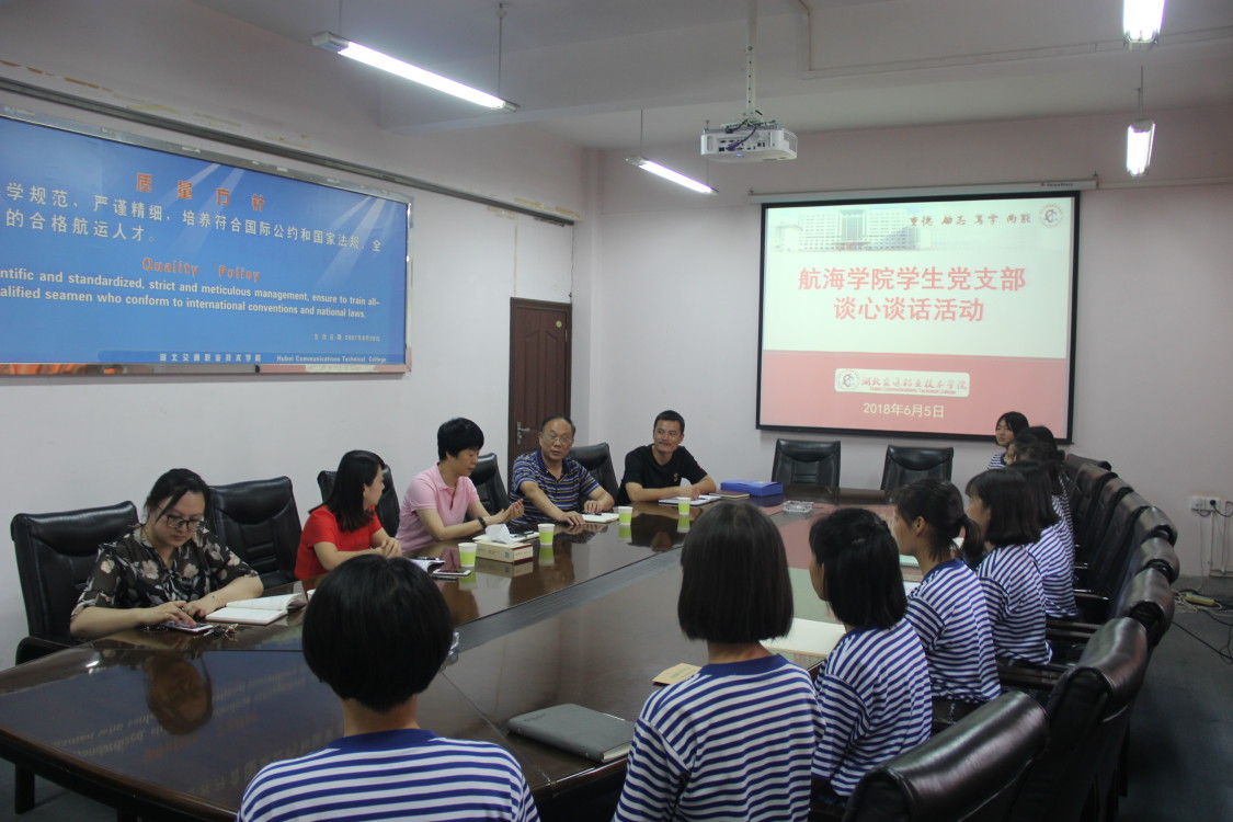 为进一步加强对党建工作的领导和指导,更好地推动党支部工作,提高党建工作水平,6月5日下午,副校长谢彤走进航海学院学生党支部基层党建联系点与士官女生面对面进行推心置腹地谈心谈话活动,该院总支书记、学生党支部支委委员及10名女士官生参加了座谈。